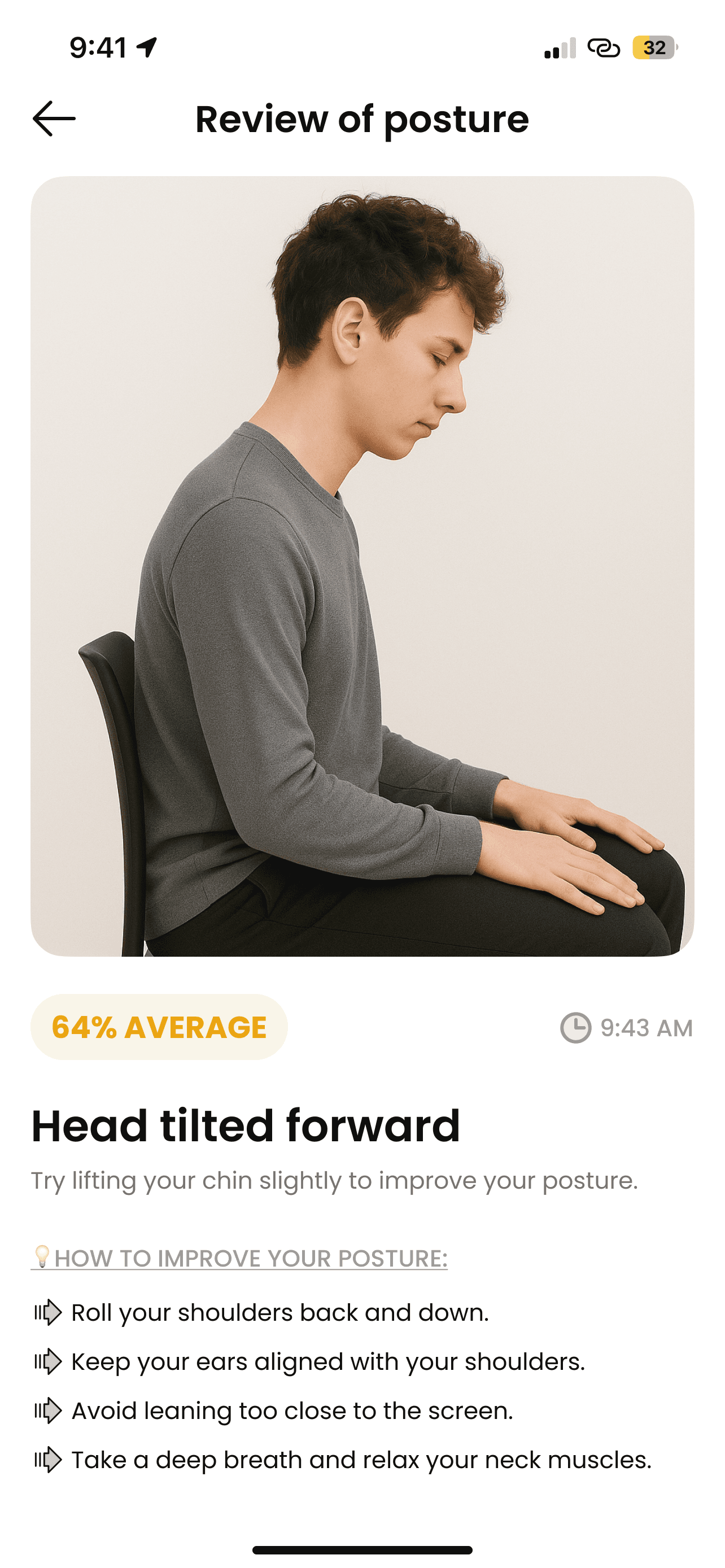 If poor posture is detected, you’ll get a gentle notification with personalized tips to help you realign and stay upright.